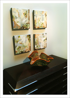 Here is a small sample of an exhibit I'm in through July 30th 2012. Some of my smaller abstracts hung over one of David Knudtson beautiful contemporary pieces complimented by José Santisteban gorgeous glass. Imagine Gallery of Fine Art - The Factory in Franklin TN.